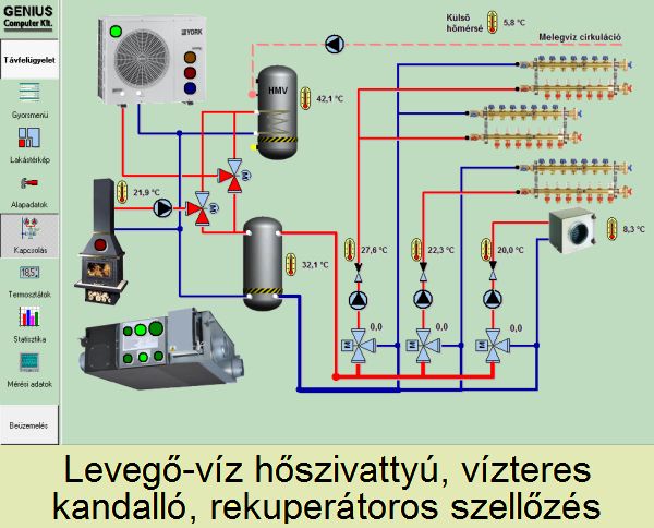 Levegő-víz hőszivattyús fűtés-hűtés, gázellátás, légtechnika