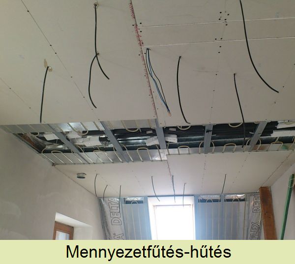 Az oldalfali és a mennyezeti fűtőcsöveket gipszkartonba mart hornyokba vagy vakolatba helyezik el.