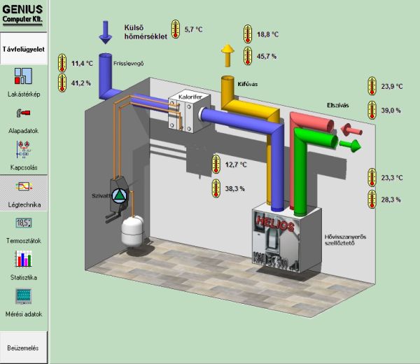 - Másik lehetőség rekuperátoros (hővisszanyerős) szellőzés kialakítása. Ebben az esetben a mellékhelyiségekből elszívott levegő hőenergiájával felmelegítjük a beszívott hideg levegőt, és ezt a felmelegített levegőt fújjuk be az állandó tartózkodású helyiségekbe. Ezzel a megoldással nem vész el a szellőző levegő energiája. Korszerű épületeknél a szellőztetés hőenergia igénye megközelíti a hőveszteséget, tehát a fűtési költség közel felére csökkenthető. A legfontosabb azonban a mindig friss, egészséges levegő biztosítása és a penészesedés kiküszöbölése.